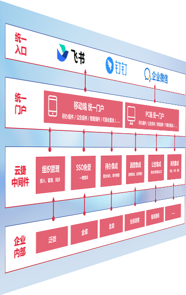对协作平台提供支持服务,,,支持企业应用与协作平台对接,,包含组织同步、、消息集成、、待办集成等。。。支持目前主流的协作平台:钉钉、、企微和飞书。。。